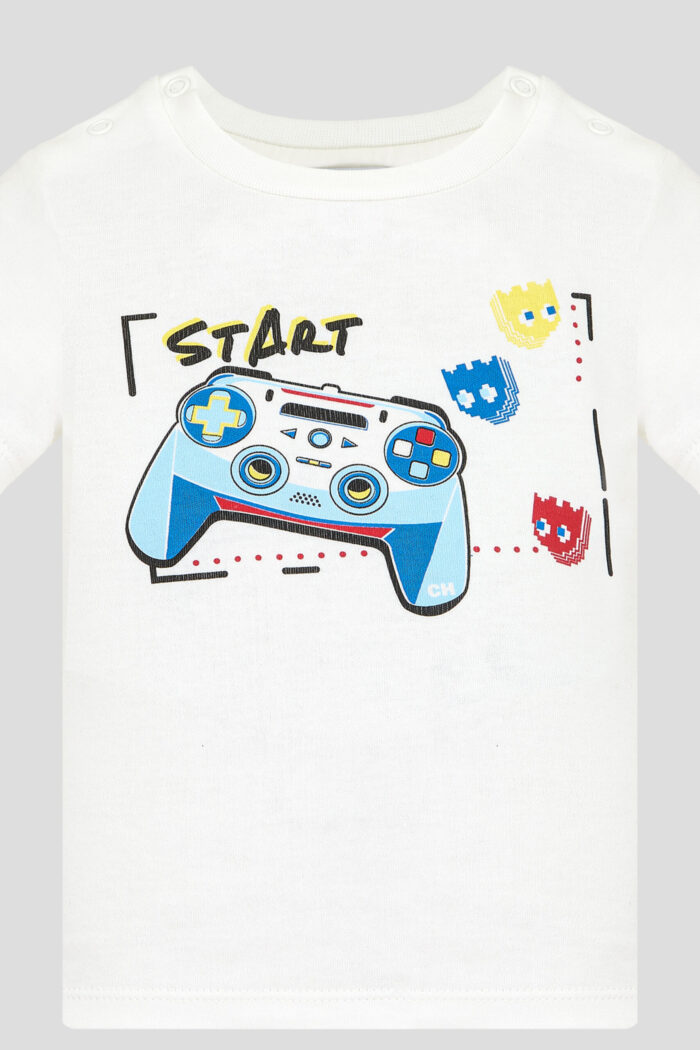 Original T-shirt for baby boy is characterised by an original and interesting pattern. It is made in universal white colour, which makes it easy to combine it with different styles. The loose straight fit does not restrain movements and gives a feeling of comfort. Practical button fastening on the shoulder simplifies the process of changing clothes. The short sleeve is ideal for warm weather and provides additional comfort. The T-shirt is made of soft, breathable cotton material, which is highly absorbent and pleasant to the body.