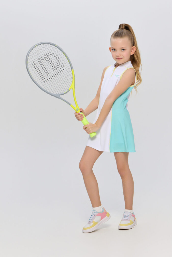 The girls’ tracksuit with dress and shorts is the perfect choice for tennis. The dress and shorts are made of elasticated fabric with CH Dry technology to wick away moisture. The ergonomic design of the dress ensures comfort both on the court and in the gym. The shorts have a special pocket for convenient storage of the tennis ball. The elasticated waistband ensures a perfect fit.