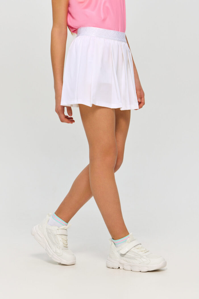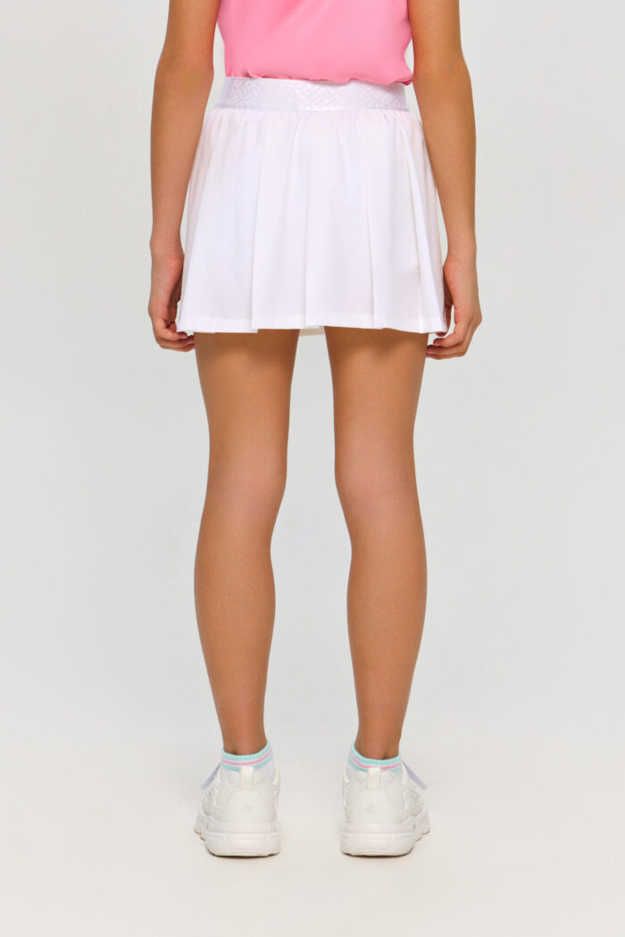 This white sports skirt for girls is an excellent choice for playing tennis. Thanks to its thoughtful design, the model does not restrict movement, allowing your child to move freely on the court. A comfortable elastic waistband ensures a secure fit. This skirt pairs perfectly with a wide range of sports tops and T-shirts, allowing your child to create unique and fashionable outfits. It will easily complement the wardrobe of a young tennis player. The model is made of stretchy material using CH Dry moisture-wicking technology.