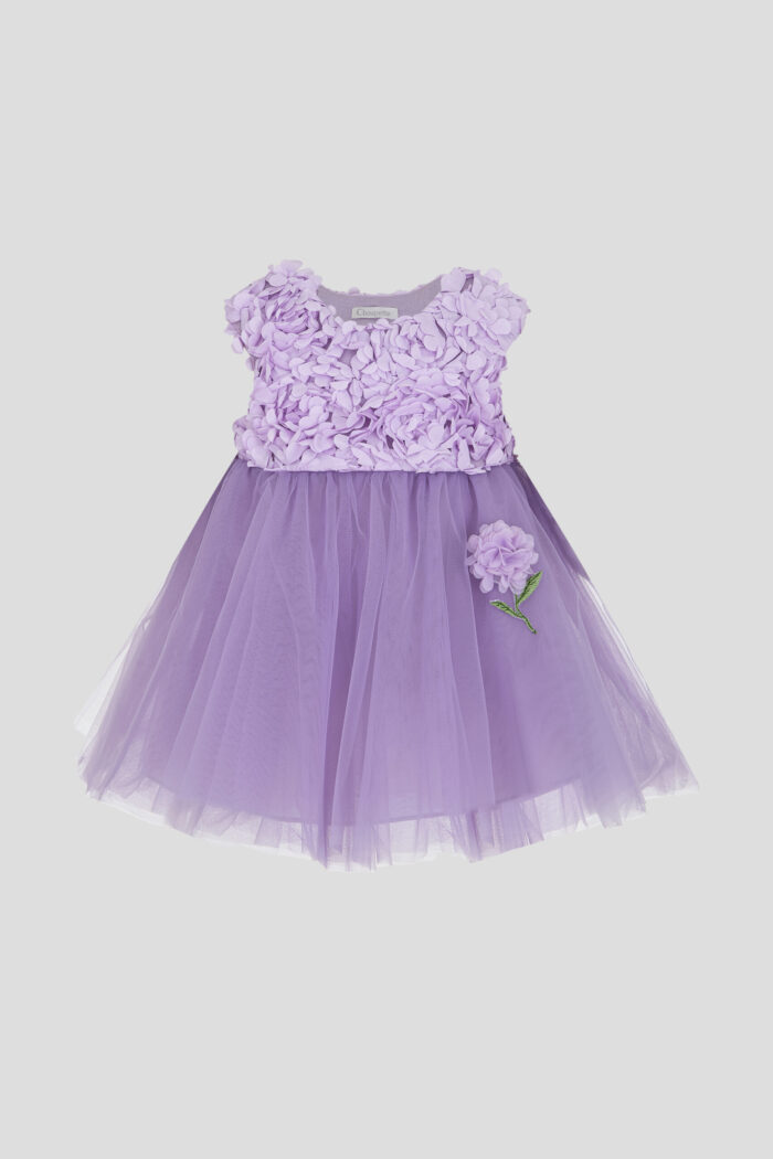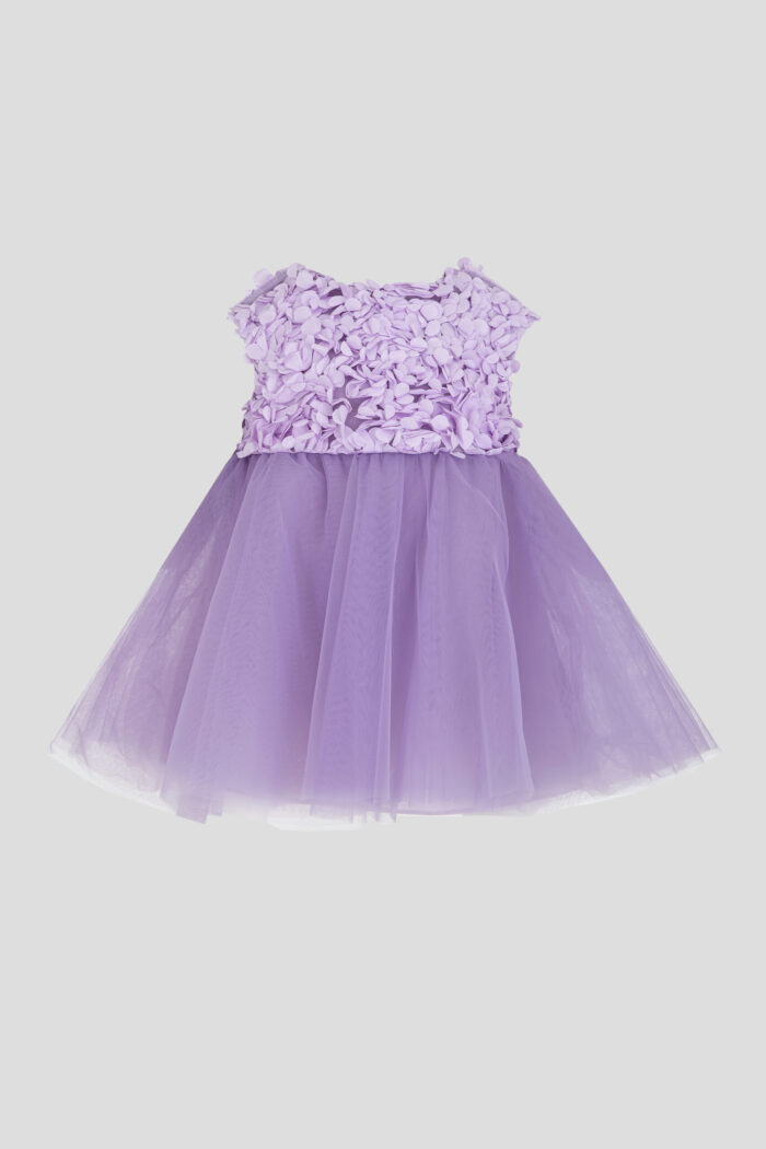 This dress for a little girl is made in a delicate lavender colour. The use of textured fabric makes this dress really festive. Puffy skirt and voluminous designer decoration in the form of a flower creates a fabulous look. Buttons on the shoulder pads make it easy to change. These details make the dress not only beautiful, but also practical for everyday wear. The lightweight and breathable material makes your child feel comfortable and confident throughout the day.