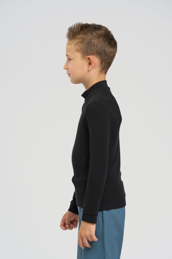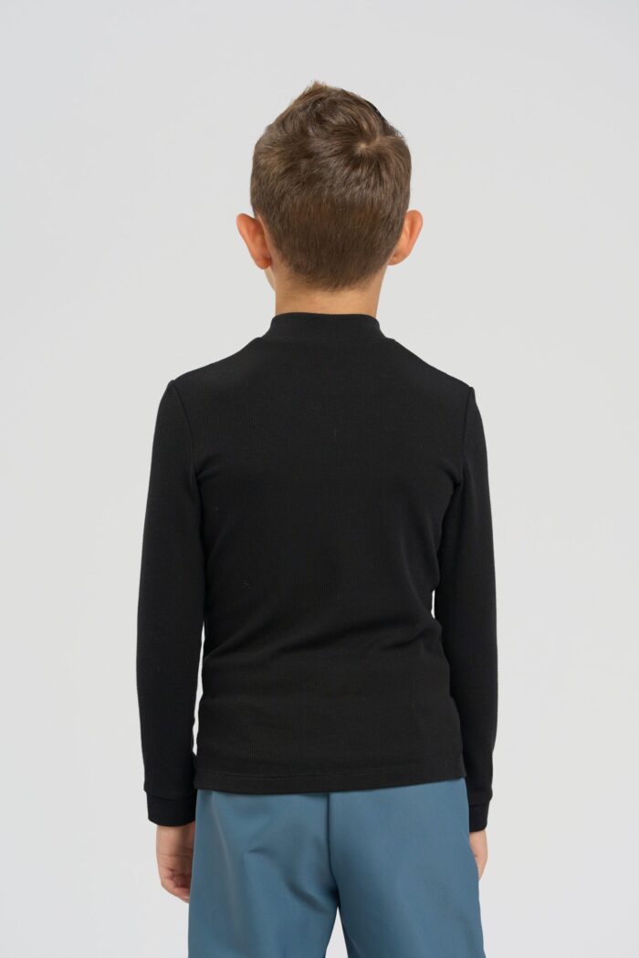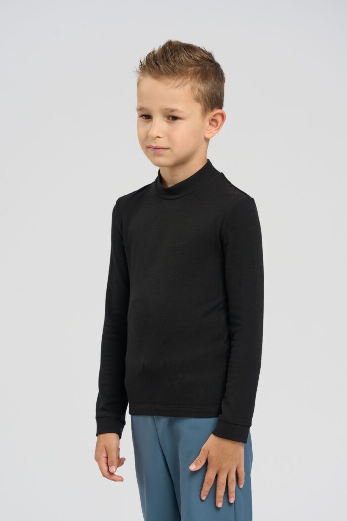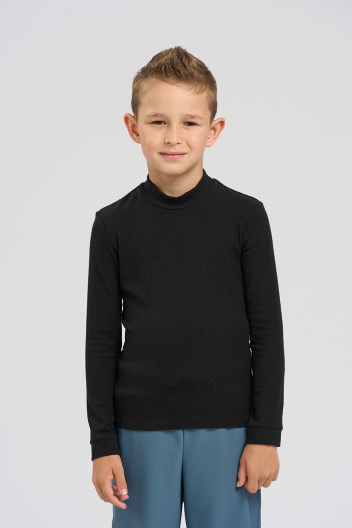 This basic boys’ turtleneck is a versatile and stylish wardrobe item. Made of soft and elastic material, it provides comfort and freedom of movement. Knitted fabric with relief texture in the form of “noodles” gives the item an interesting look and pleasant tactile sensations. The tight silhouette emphasises the figure without restricting movements. The high collar protects from cold. Black colour makes the jumper universal, it can be easily combined with different pants or jeans.